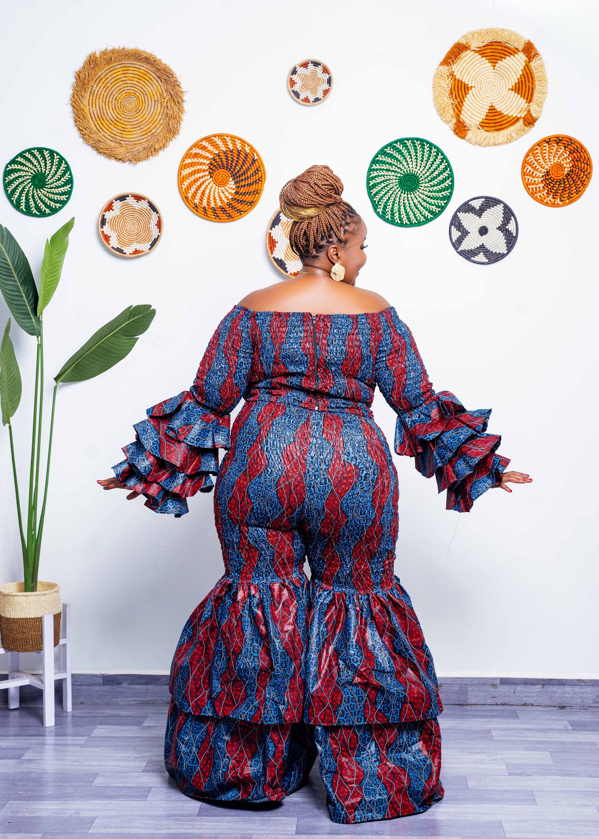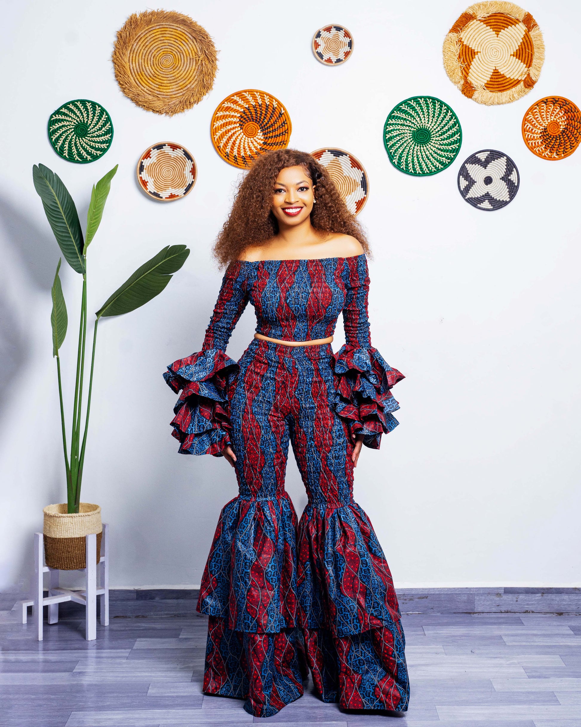 Kimi Ankara Bell Bottom Pant set - Navy Blue